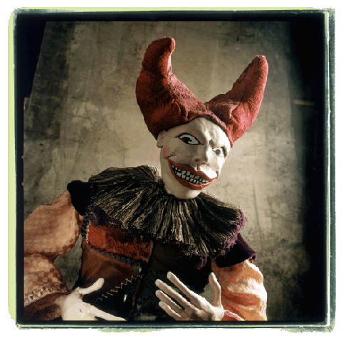 The clown's coat is made from an antique crazy quilt purchased at a shop in rural southern California. It has now appeared as a prop in two different independent films.