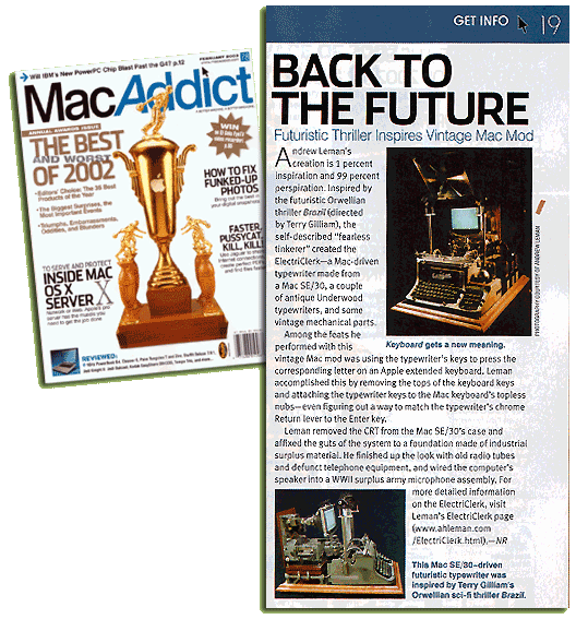 The ElectriClerk was featured in the Get Info section of the February, 2003 issue of MacAddict magazine. The blurb appears at left.