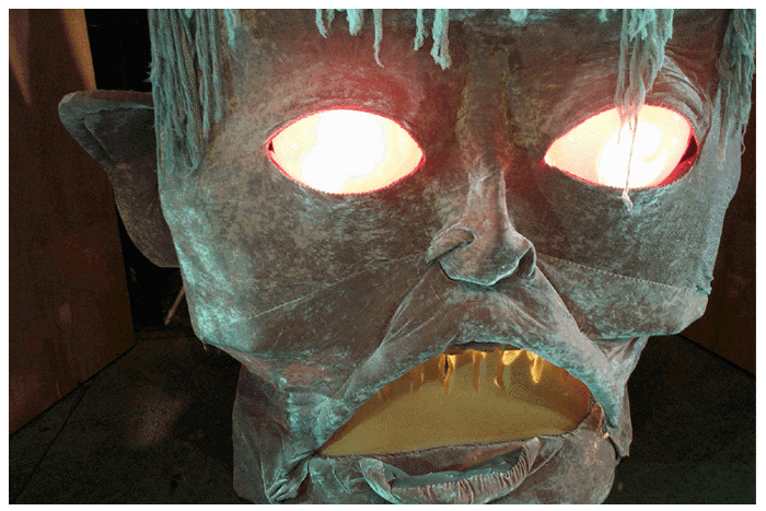 <-- A detail view of Hecate's face. Light leaked out through the mouth as well, which, under stage lighting, actually looked pretty good.