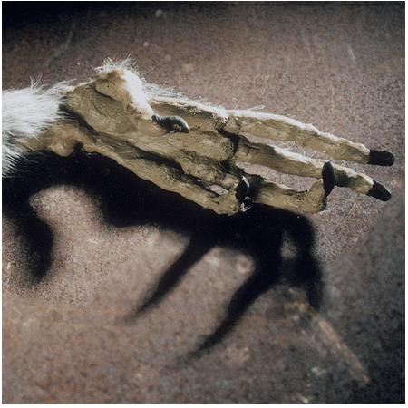 | Although inspired by the hands of a baboon at the Field Museum of Natural History in Chicago, the anatomy of this paw is deliberately distorted.