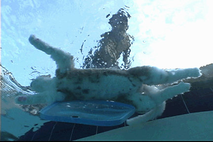 Click the image at left to see a video clip of the cat being extracted from the pool (600k download). |